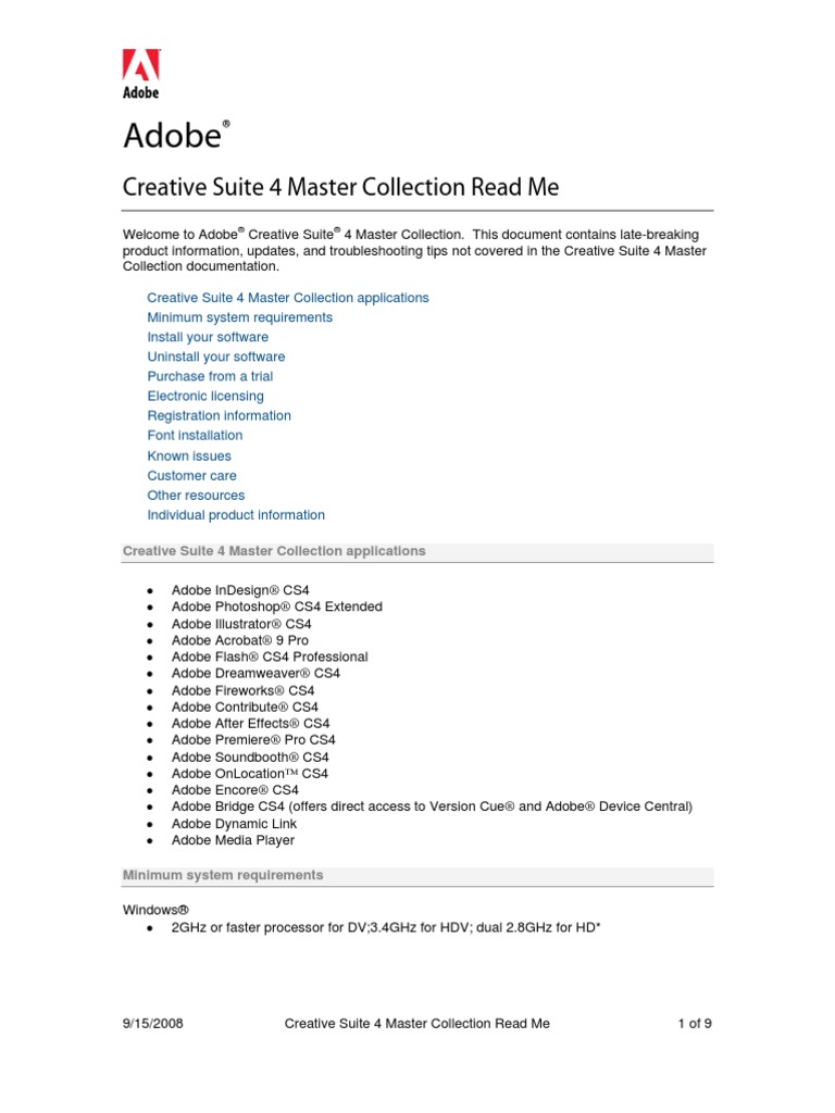 Adobe Creative Suite 55 System Requirements comprehensive for Windows and Macintosh on all suites and CS55 point products. A Select your language from the menu in the upper right. If you downloaded the software from the web open the folder navigate to the Adobe CS4 folder double-click Setupexe and then follow the on-screen instructions.