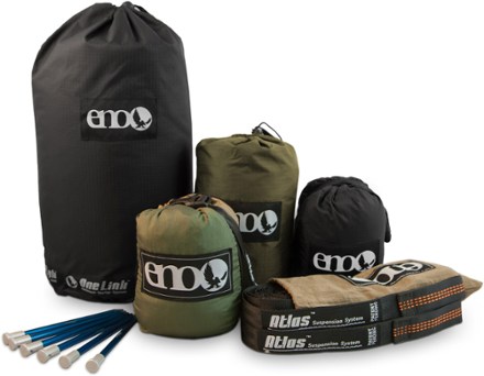 The ENO OneLink Sleep System comes complete with your choice of strap system I chose the Atlas over the slap straps and the ProFly rain tarp with Easton stakes. Packed Size 105 x 10 x 45 inches Best Use Camping Features. They are now based in Asheville NC. The OneLink Hammock System is a accessory brought to you by ENORead OneLink Hammock System reviews or submit your own review to share with the paddling community. With ENOs comprehensive OneLink Hammock Shelter System youve got the goods to deal with Mother Nature on a bad day. ENO Eagles Nest Outfitters Atlas Hammock Straps Suspension System with Storage Bag 400 LB Capacity 9 x 1575 BlackRoyal 49 out of 5 stars 2623 8 offers from 2558. Add to cart Quick view. Sleeping Capacity 1-person Packaged Weight 4 lbs. With its quick and easy knot-free setup youll be prepared for anything Mother Nature throws your way.