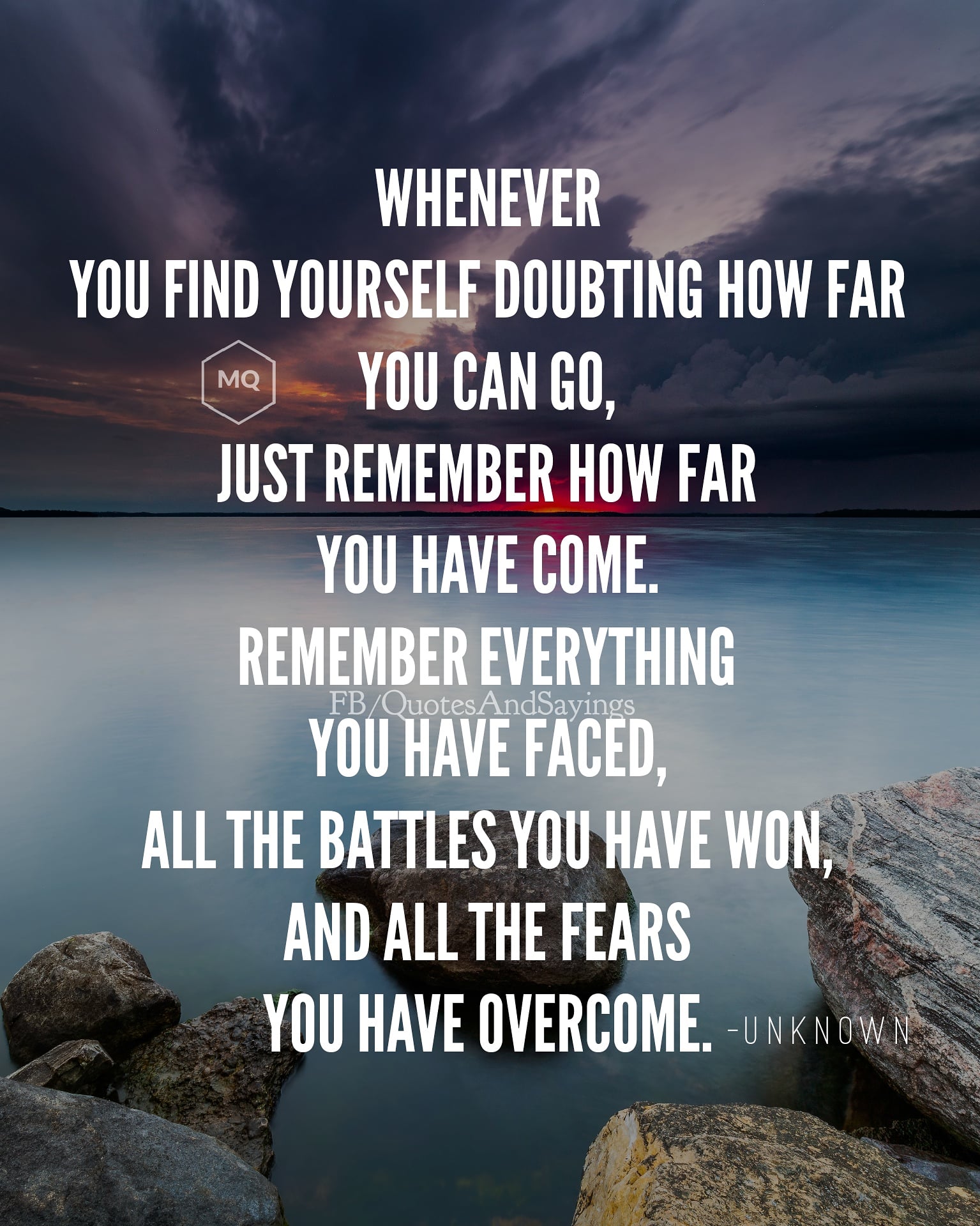 Remember how far youve come. We live in a fast paced world that is filled with sources of gratification competition and pressure. Remember what youve overcome before.